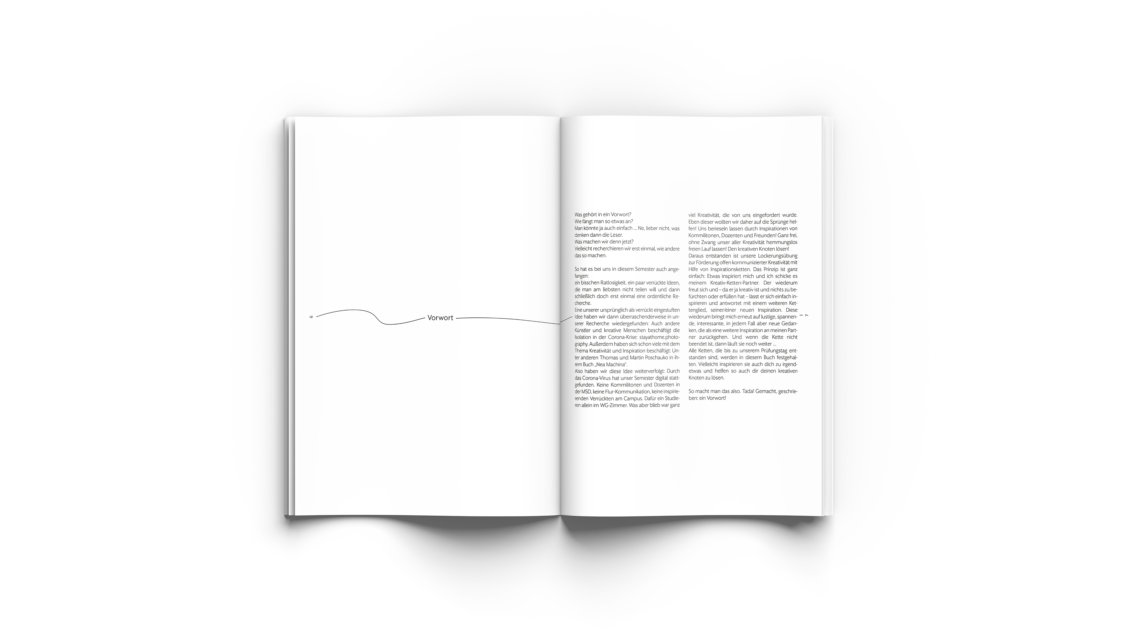 Benno und ich beschäftigten uns damit, inwiefern Inspiration in einer stark veränderten Situation noch stattfinden kann. Dazu analysierten wir mittels eines Inspirationstagebuches unsere eigene Art des „Inspiriert-werdens“ und des „Sich-inspirieren-lassens“.